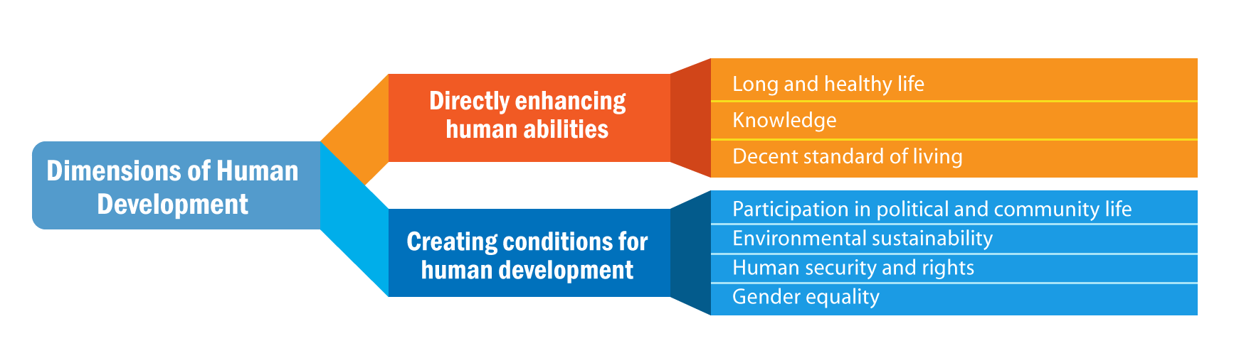 Human development is about giving people more freedom and opportunities to live lives they value. In effect this means developing people’s abilities and giving them a chance to use them. For example, educating a girl would build her skills, but it is of little use if she is denied access to jobs, or does not have the skills for the local labour market.